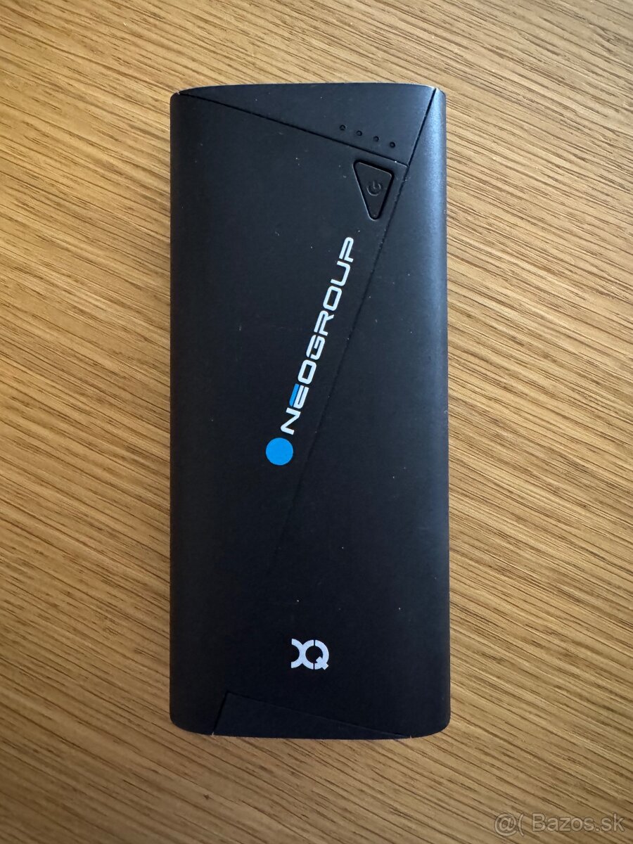 Čierna externá nabíjačka XQISIT. Použitá 1x. Kapacita: 10400 mAh. 2x USB port, 1x mini-USB port.