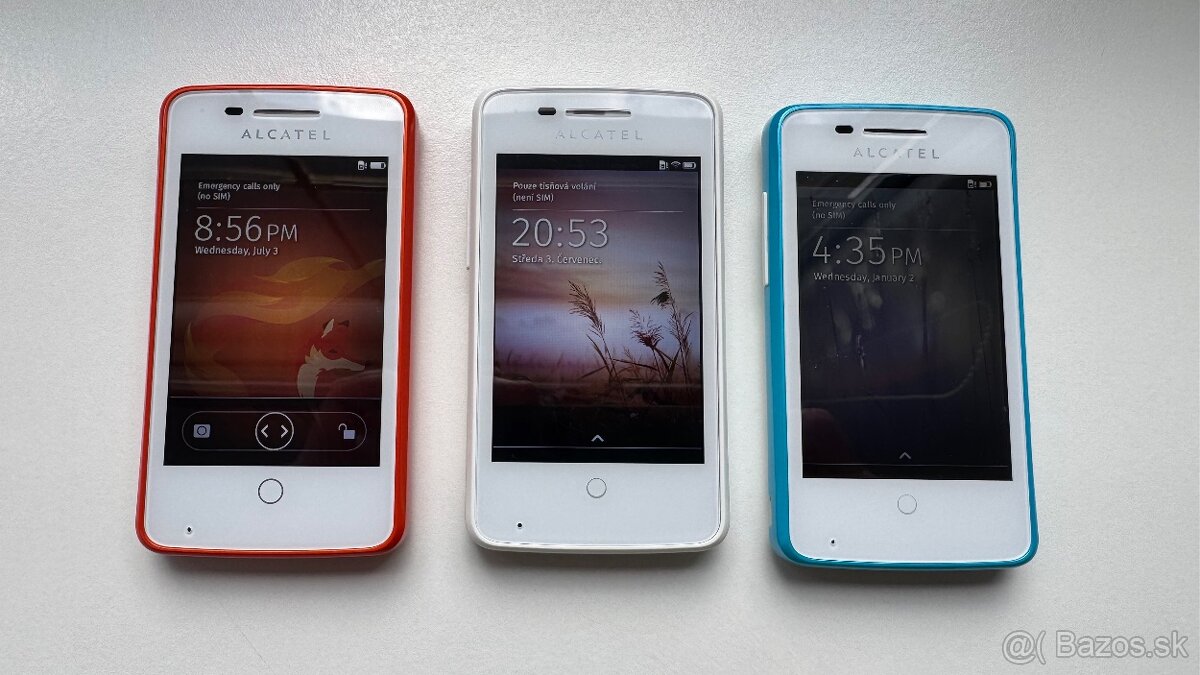 Predám Alcatel One Touch Fire. 3x rôzne varianty FirefoxOS. Plne funkčné, neblokované, pre fanúšikov FirefoxOS. Predaj iba mobily, nabíjajú sa cez microUSB. Osobne TO, NR alebo poštou. Kontakt e-mail.