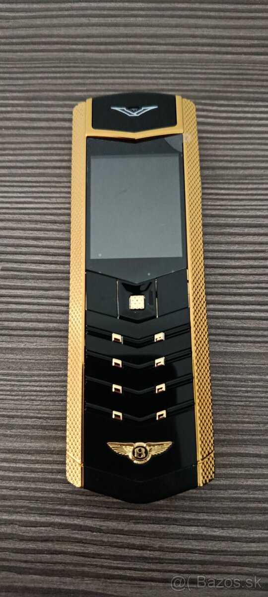 Predám úplne nový kovový mobilný telefón zlatej farby nikdy použitý viď blomba na batérií púzdro krabica nabíjačka