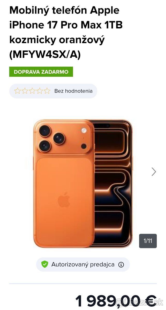 Predám len osobne zabalený mobilný telefón Apple iPhone 17 Pro Max 1 TB v prevedení Cosmic Orange samozrejme s dokladom o kúpe a zárukou. Kúpa krásneho Vianočného darčeku za bezkonkurenčne najlepšiu cenu.