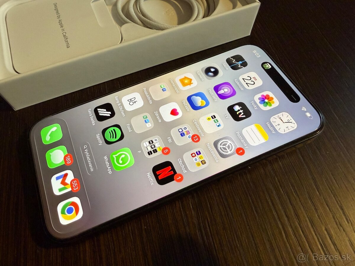 Predám Apple iPhone 15 Pro 256GB Black Titanium, v 100% stave bez jediného škrábanca nosený len v ochrannom púzdre, s ochranným sklom. Zdravie batérie 88%.