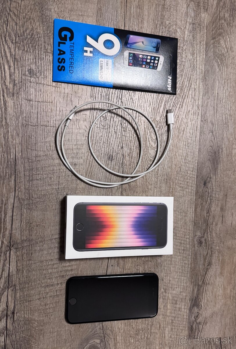 Predám Apple IPhone SE 2022, 64GB vo veľmi zachovalom stave, plne funkčný, zdravie batérie 82%, prislušenstvo : originál krabica, telefón, kábel na napájanie, ochranné puzdro, nové ochranné sklo!!! Dohoda možná.