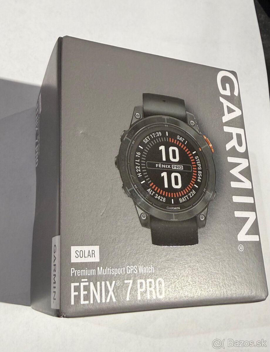 Predam hodinky Garmin Fenix 7 Pro Solar Slate Gray Stainless Steel, Black Band - nepouzite, nerozbalene, s dokladom - zaruka 23 mesiacov. Cena 500€. Osobne Rovinka, BA.