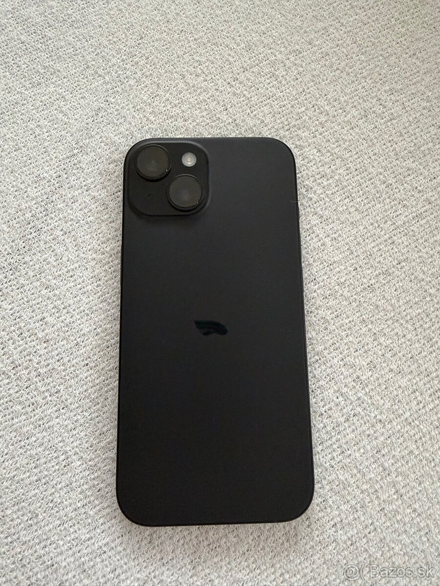 Predám tento iPhone 15 128GB, kupovaný v máji 2024 v NAY, čiže do mája 2026 ešte v záruke. vizuálne je telefón v 100% stave, žiadne škrabance ani odreniny. Zdravie batérie je 86%. Pri rýchlom jednaní menšia dohoda možná. K telefónu mám komplet balenie, nabíjací kábel a kryt.