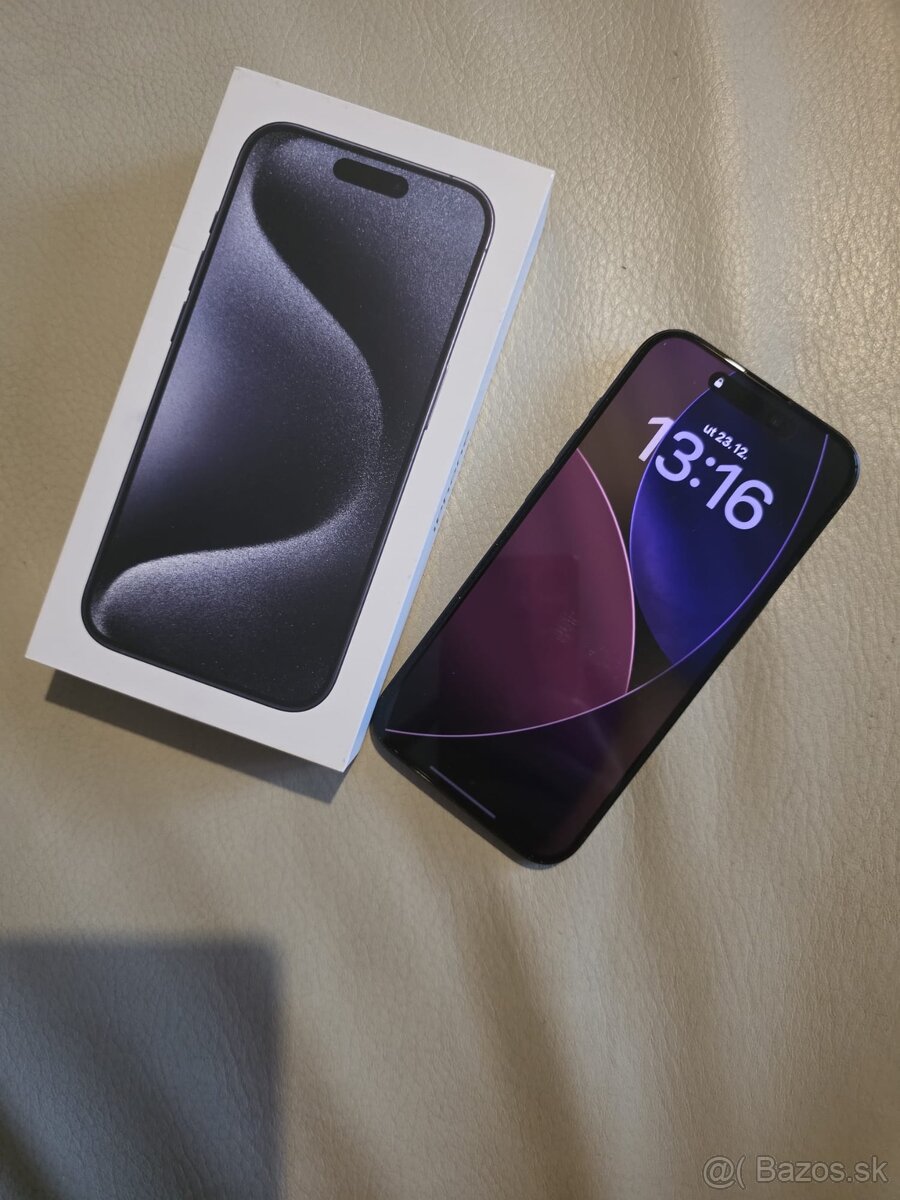 iPhone 15 Pro 128GB - [23.12. 2025]Ako nový, bez škrabancov. Dôvod predaja je jeho nevyužitie. Zdravie batérie 100%. Počet cyklov 7. Vid na foto.