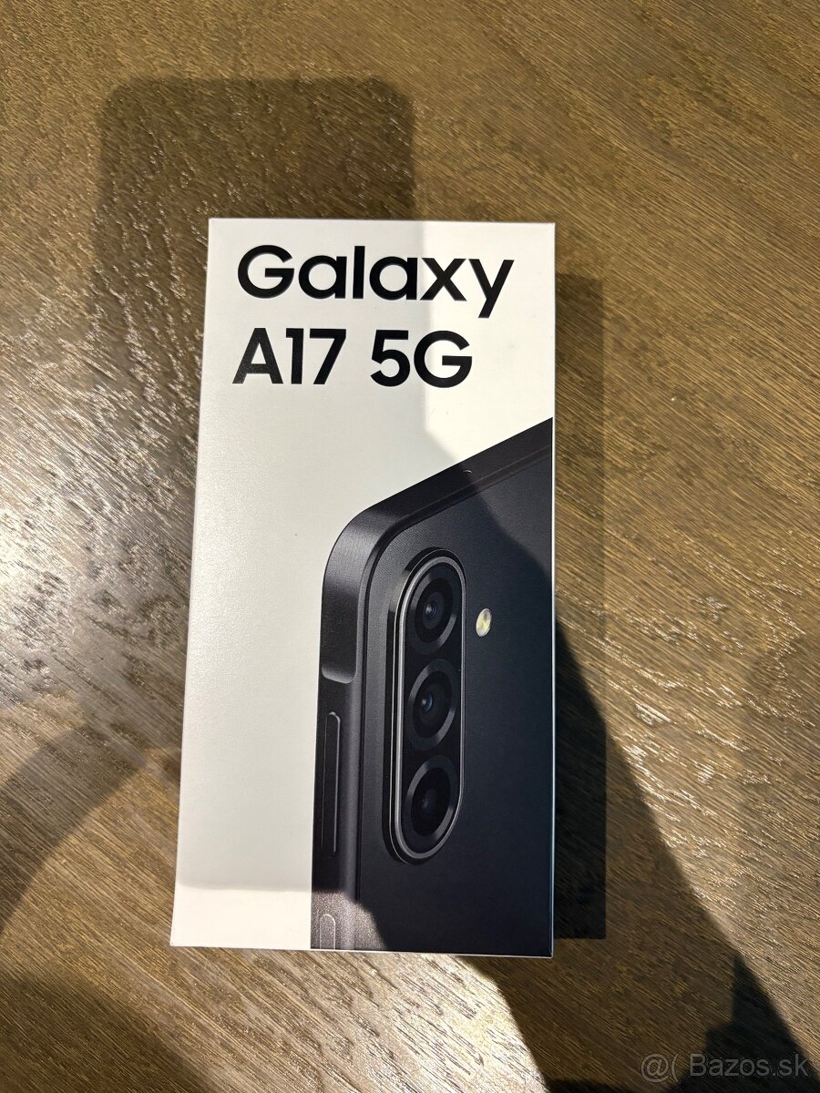 Predám nový telefón Samsung Galaxy A17, 5g v čiernej farbe. Neotvorený, nepoužitý. Pamäť 128gb.
