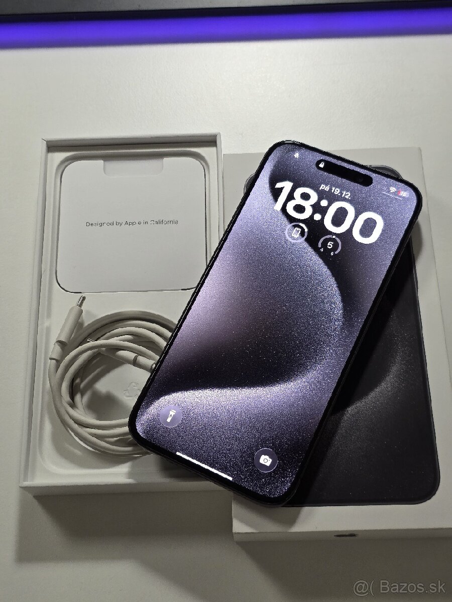 iPhone 15 Pro 128GB - [23.12. 2025]Ako nový, bez škrabancov. Dôvod predaja je jeho nevyužitie. Zdravie batérie 100%. Počet cyklov 7. Vid na foto.
