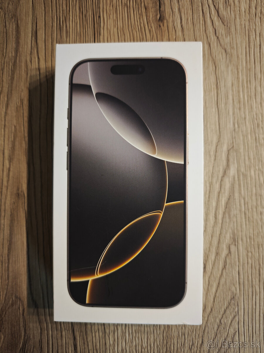 Predám Iphone 16 Pro, 128GB úložisko, prevedenie Natural titanium. Telefón je nerozbalený, nepoužitý. Bol to dar.
