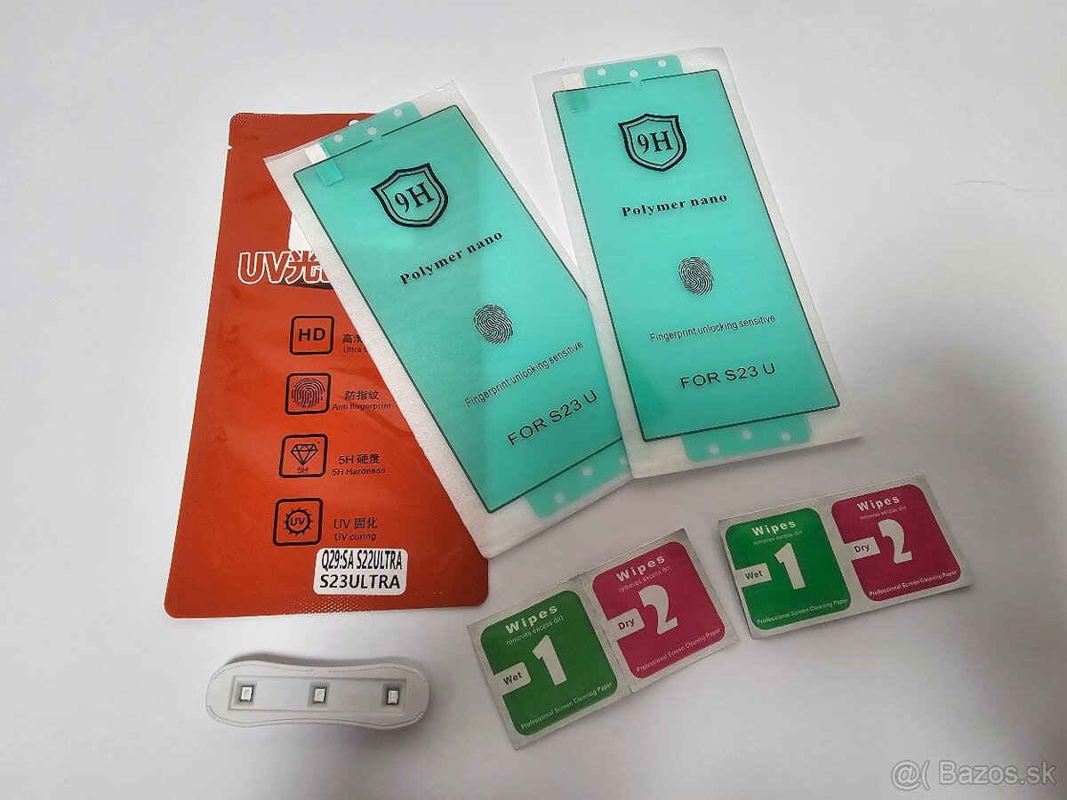 1x UV Hydrogelovu foliu ktora sa len nalepi na displej a chvilu osvetli UV svetlom vdaka ktoremu vytvrdne a odolava narazom a skrabancom.