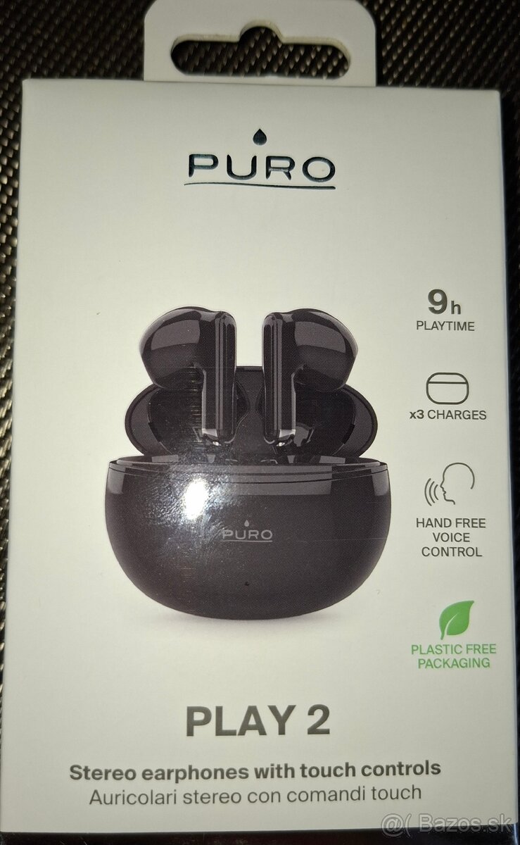 Bezdrôtové slúchadlá TWS PLAY 2 značky PURO, s dotykovým ovládaním. Slúchadlá sú ideálne pre tých, ktorí radi telefonujú a počúvajú hudbu bez obmedzení. Sú navrhnuté s minimalistickým dizajnom, zaručujú vysoký výkon a mimoriadne pohodlné počúvanie počas celého dňa. Dotykové ovládanie umožňuje dokonalú správu hudby a hovorov, ktoré budú mať vďaka zabudovanému mikrofónu vynikajúcu kvalitu. Ergonomický tvar zaručuje dokonalú stabilitu v uchu počas akejkoľvek každodennej činnosti, či už pri športe alebo na cestách. Súčasťou je aj nabíjacie puzdro určené na dobíjanie slúchadiel. Keď ich vložíte dovnútra, puzdro ich plne dobije až 3-krát a zaručí celkovo 9 hodín používania.