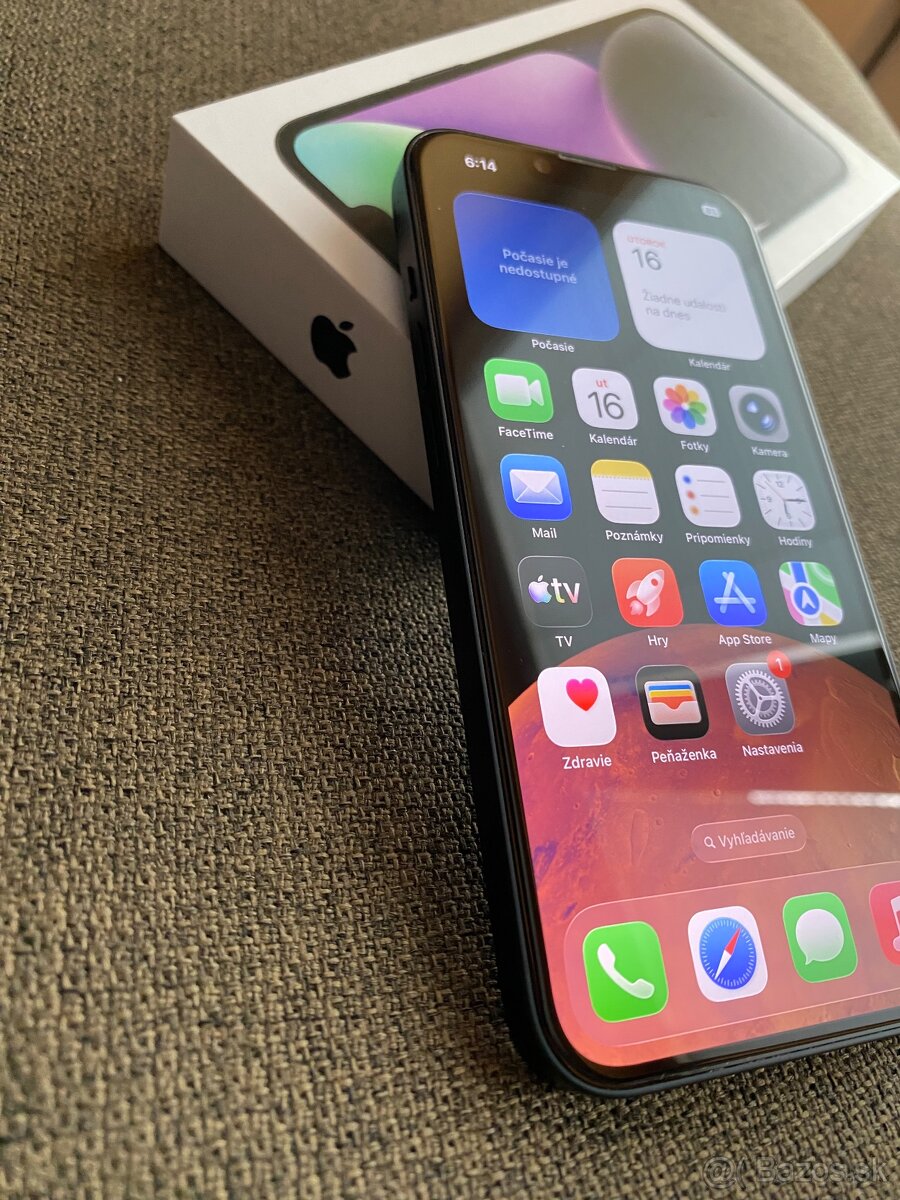Predám iPhone 14 v farbe Midnight (čierna), kapacita 128 GB. Telefón je plne funkčný, vo veľmi dobrom stave, bez závad. Používaný v obale a s ochranným sklom. Odhlásený z iCloudu, pripravený pre nového majiteľa.