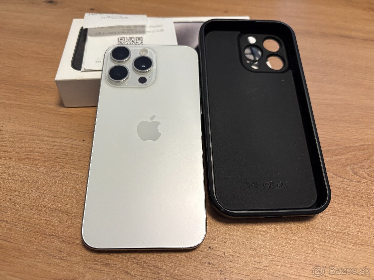 Predám iPhone 15 Pro MAX 256GB White Titanium vo výbornom stave, bez jediného škrabanca a iných poškodení. Mobil bol vždy v obale a s ochranným sklom na ploche aj na objektívoch. Zdravie batérie je 92%, cyklus nabíjania 460x. Záruka do konca januára 2026. Dôvod predaja: prechod na novší model.