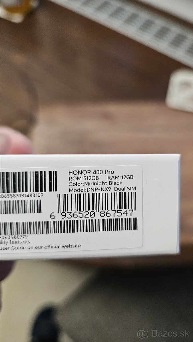 Predám nový, ešte nerozbalený mobil Honor 400 Pro 512 GB, čierny.