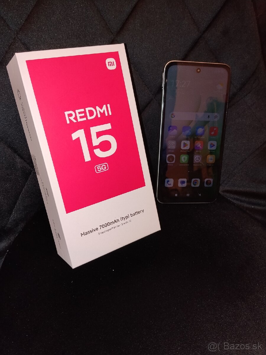 Predám Nový,iba rozbalený a odskúšaný mobil Xiaomi Redmi 15, 5G. smartfón • 6,9" uhlopriečka • IPS LCD displej • 2340 × 1080 px • procesor Qualcomm Snapdragon 6s Gen 3 (8-jadrový až 2,3 GHz) • pamäť RAM 4 GB • interná pamäť 128 GB • dvojitý zadný fotoaparát 50 + 2 Mpx (f/1.8) • predný fotoaparát 8 Mpx (f/2.0) • nano SIM, hybridný slot • 4G/LTE • 5G • Bluetooth • GPS • NFC • Wi-Fi • USB-C • zvýšená odolnosť s certifikáciou IP64 • odomykanie pomocou tváre a odtlačkov prstov • Android 15.0, HyperOS 2 • kapacita batérie 7 000 mAh • rýchle nabíjanie 33 W,