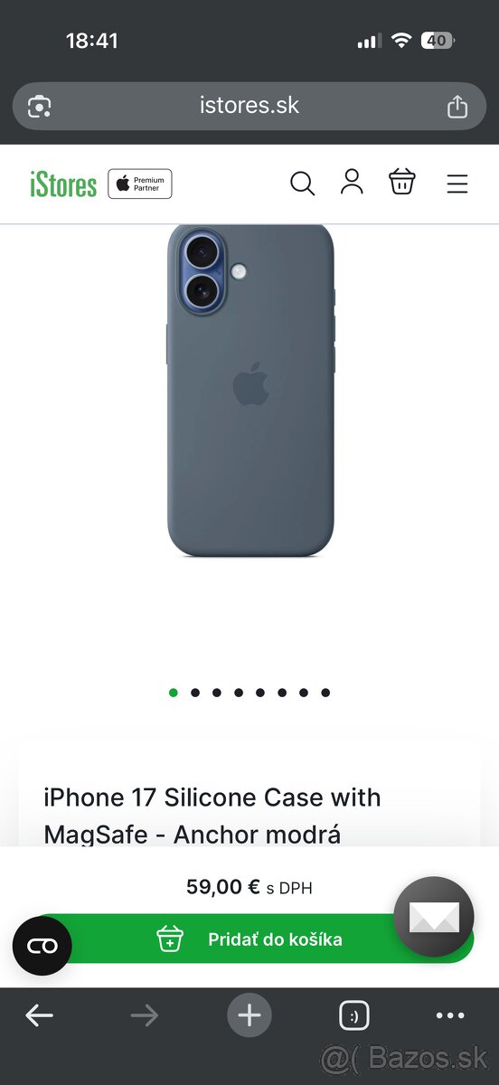 Predám tento originálny kryt Apple pre zariadenie Iphone 17. Ide o silikónový kryt vo farbe Anchor Blue