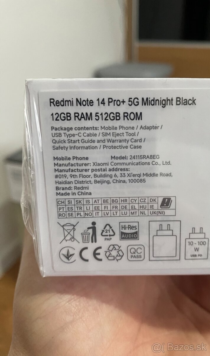 XIAOMI REDMI NOTE 14 PRO+ 5G 512GB BLACK - [31.1. 2026]Predam tento telefon. Uplne novy a neotvoreny. Farba mignight black 12GB RAM 512GB ROM