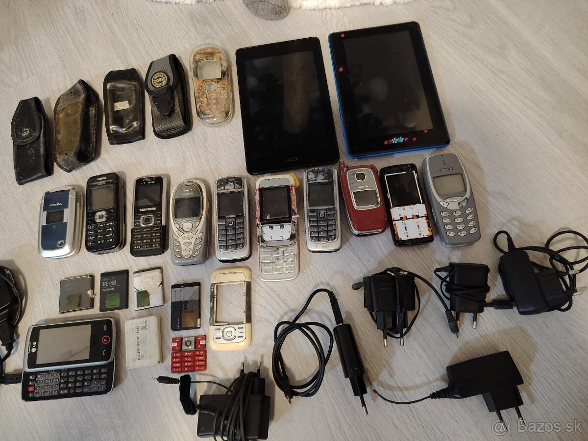 Ponúkam na predaj retro telefóny a tablety, LG telefón plne funkčný plus nabíjačka, ostatne telefóny niektoré na diely, niektoré neviem vyskúšat nemajú Nabíjačky, cena za všetko 50 eur