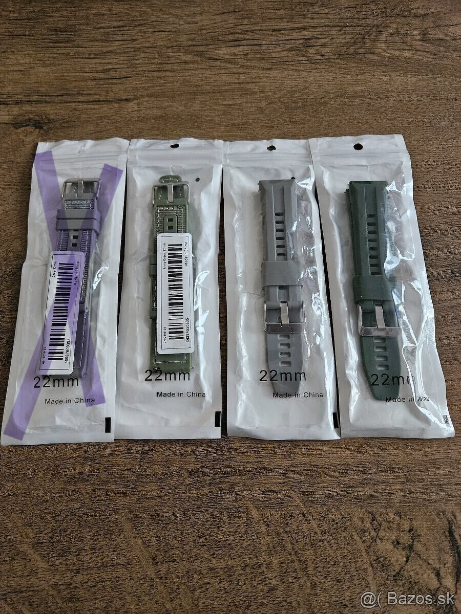 Predám pekné,kvalitné remienky 22mm. Ideálne pre Huawei Watch GT .Prípadne aj iné značky hodiniek s 22mm remienkom.2ks sú silikónové a 1ks silikónový, plus všitá látka,sivá a zelá farba.Remienky su nové, nepouživané.Cena 2Eur kus.Všetky tri spolu 5Eur .