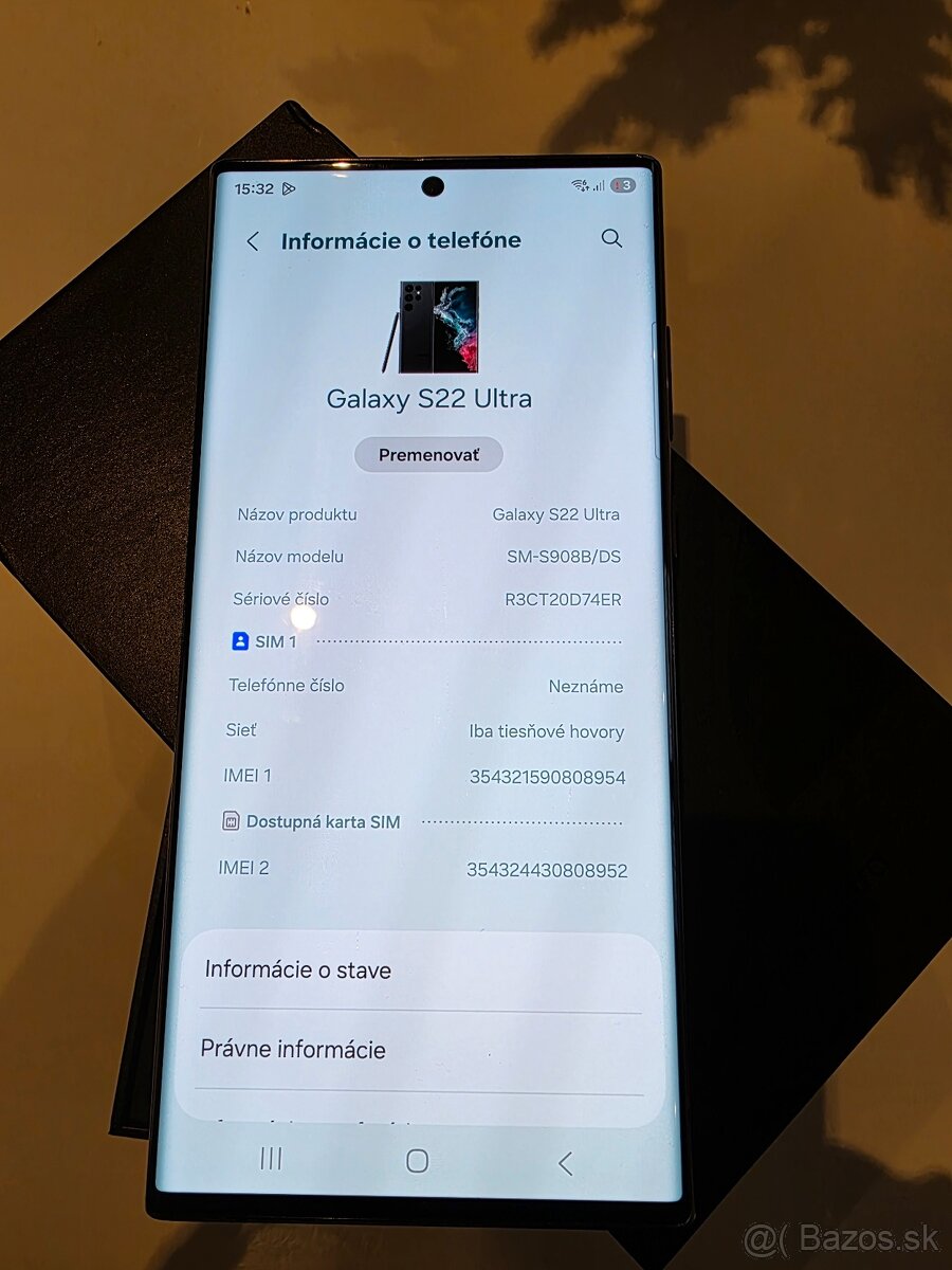 Na predaj originál Samsung Galaxy S 22 ultra 12/256 s krabicou +1 ochranný kryt. Plne funkčný, cena 250€, osobný odber