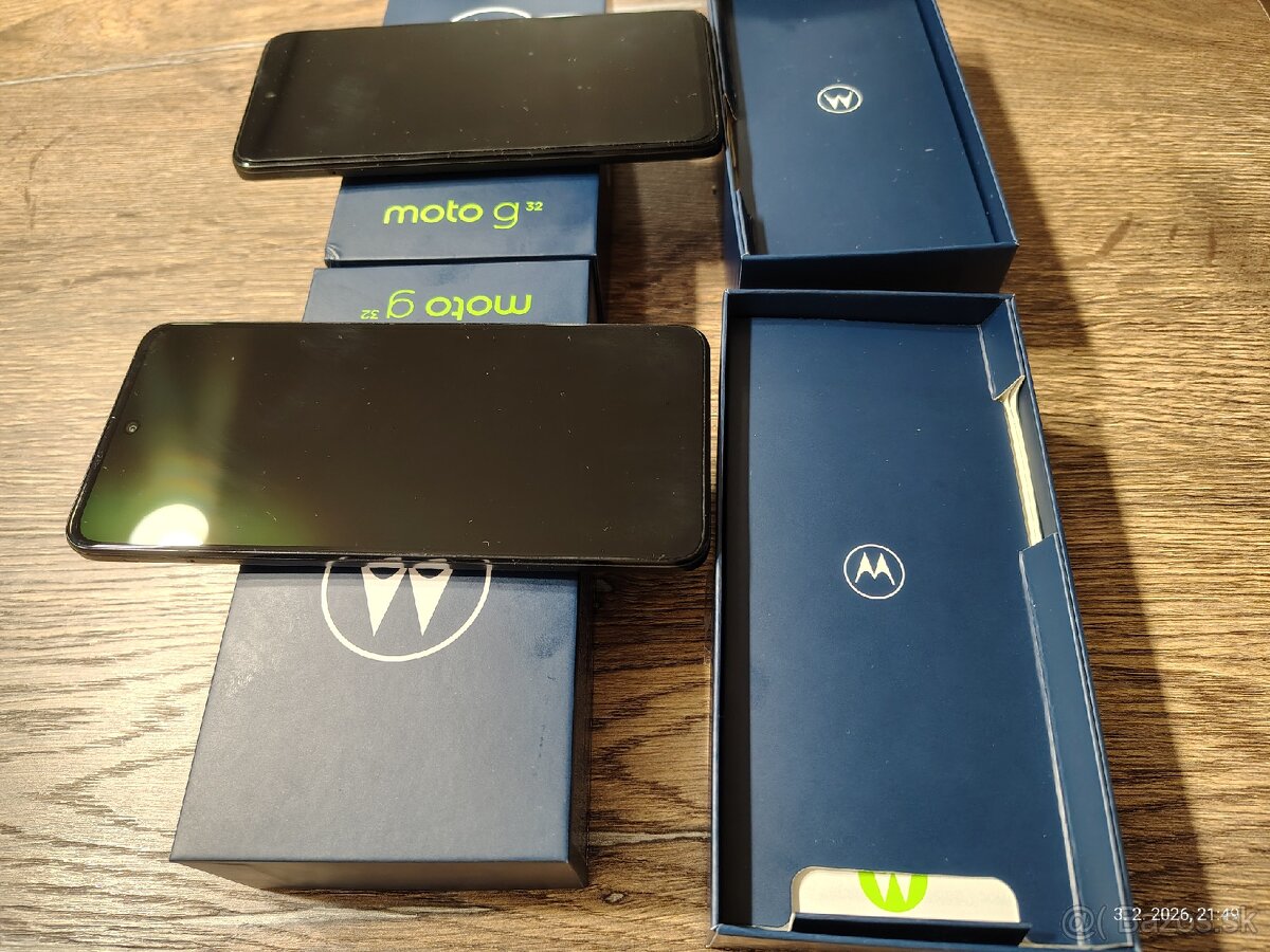 Predám najlepšie spolu 2ks Motorola moto g32. Telefóny sú používané a majú aj znaky používania viď foto. Cena je aj z poštovným za 2ks. Predávam len telefóny a krabičky. Nab. ani káblik nie sú v balení.