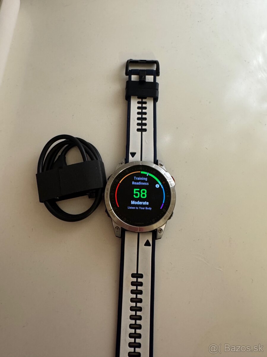 Batéria drží výborne, ideálne na cyklistiku, beh, fitness – veľmi dobre funguje s Garmin Connect a Strava, multisportový AMOLED displej, GPS, hudba, notifikácie. Silikónový náramok, nabíjací kábel.