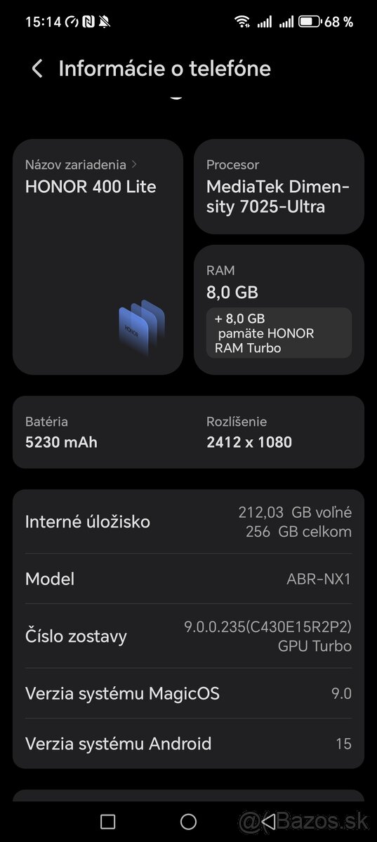 Predám Honor 400 Lite kupovaný 2.12.2025.Len osobný odber Poprad prípadne viem doniesť v okolí