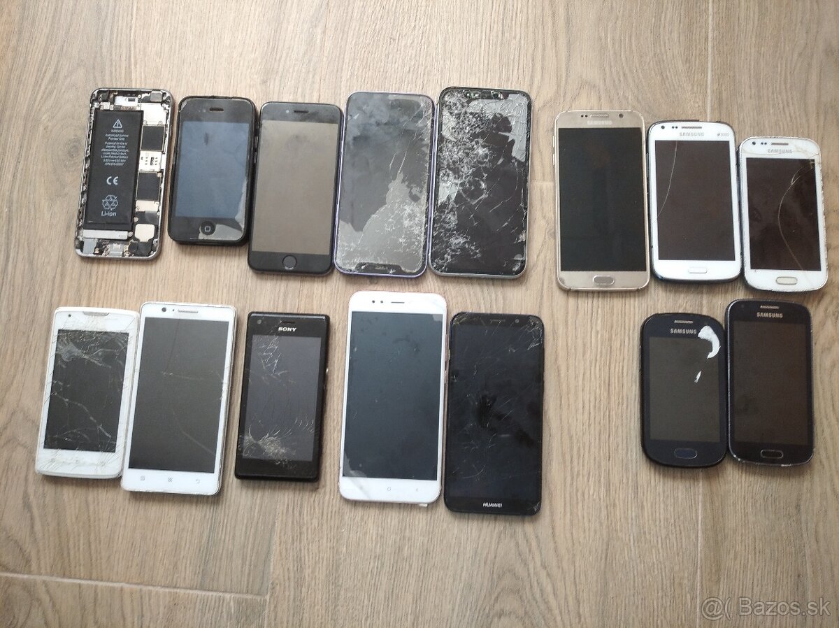 Telefóny sú nefunkčné, nekompletné alebo na diely, niektoré rozobraté.