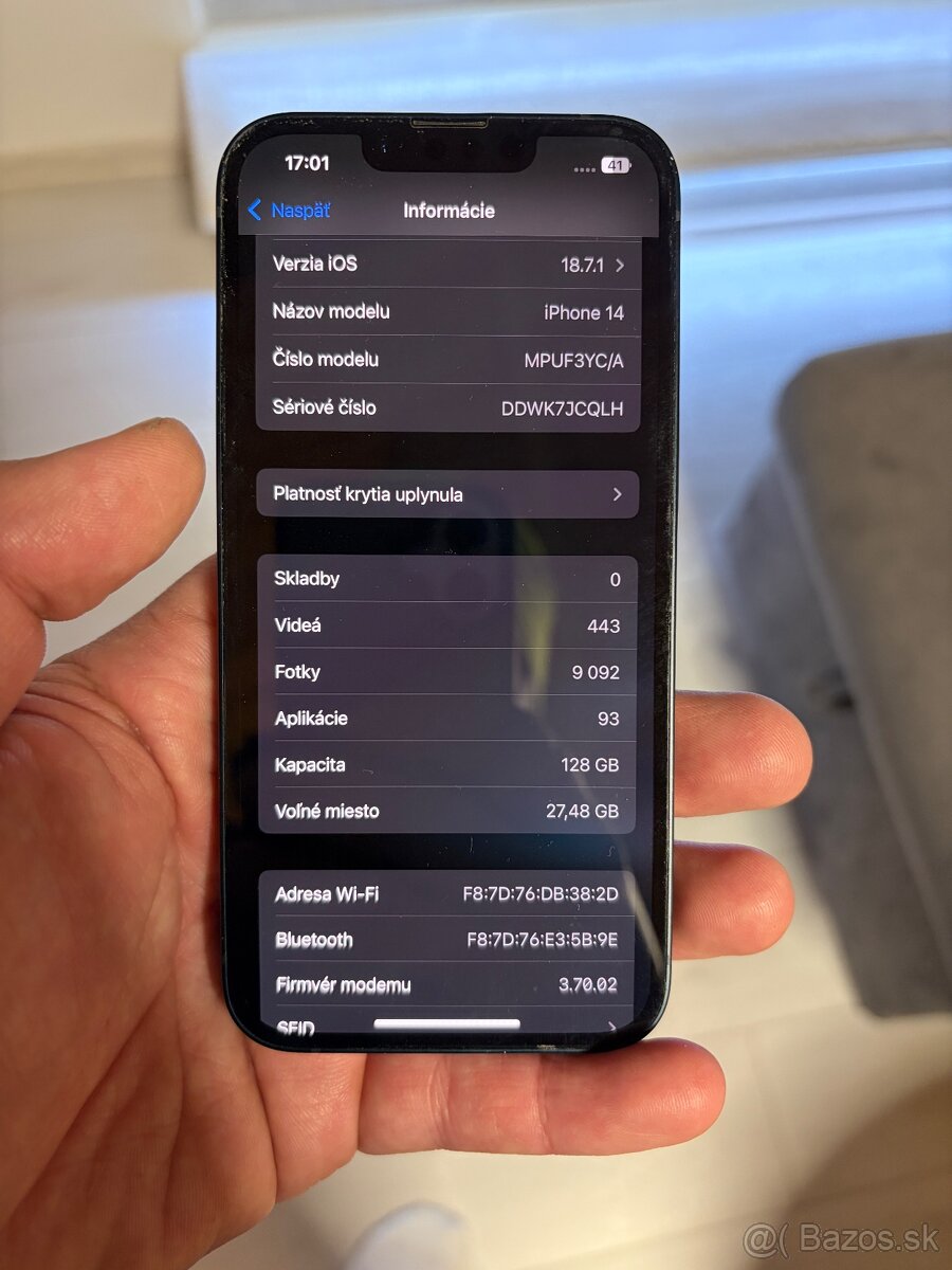 Predám Apple iPhone 14 128gb Midnight. Plne funkčný. K telefónu je komplet balenie.(krabička,nabíjací kábel) Kapacita batérie je 83 % Vydrží celý deň.