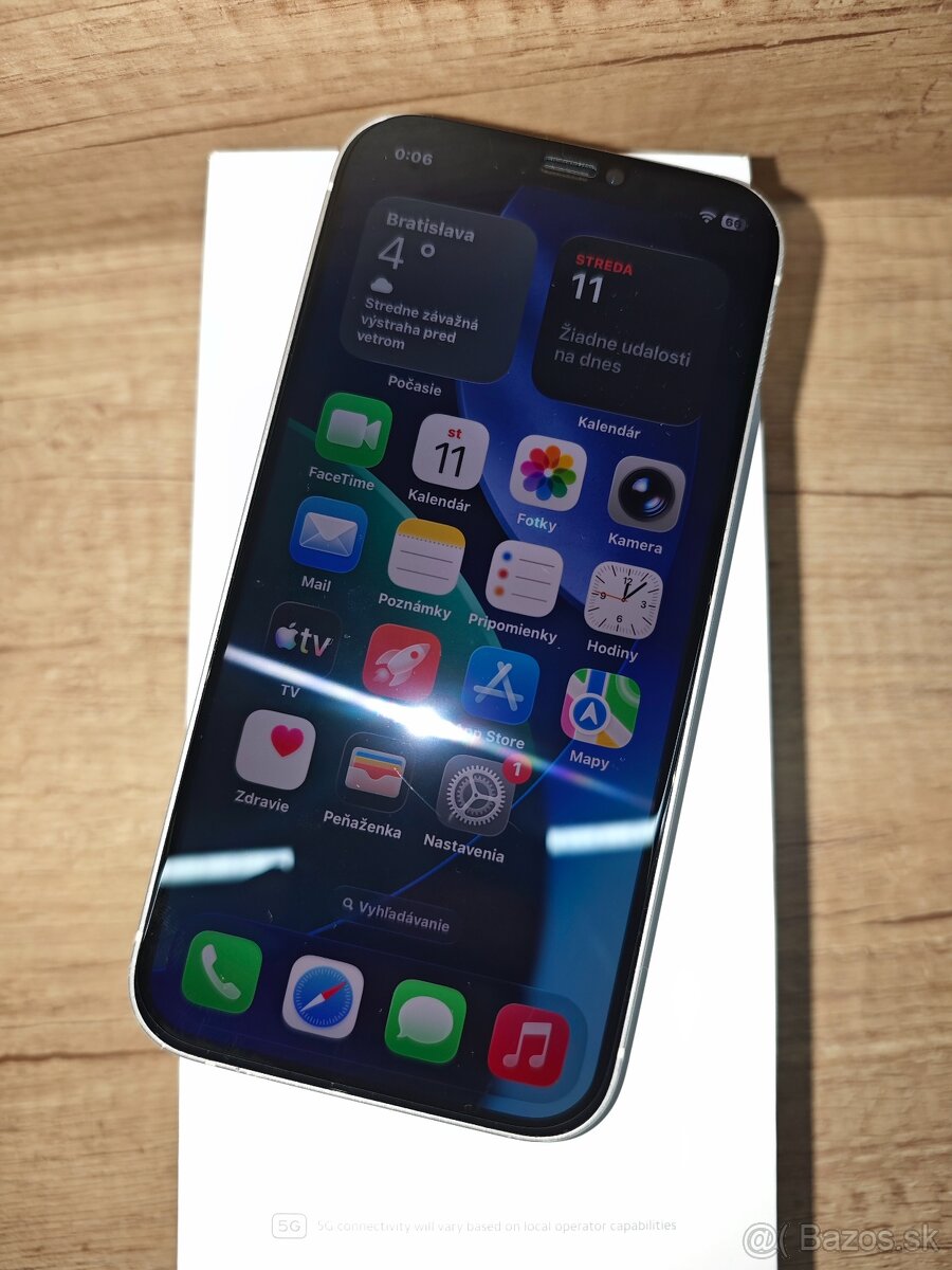 Predám iphone 12 komplet v krabičke používaný v puzdre a nalepené ochranné sklo k telefónu pridám silikónové puzdro,ochranné sklo,usb káblik a bezdrôtovú nabíjačku.