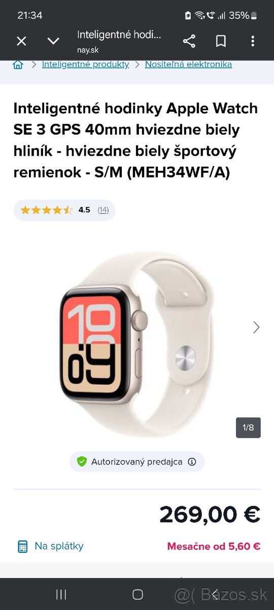 Predám úplne nové Apple watch se 3 40m nepoužité cena nové 269e