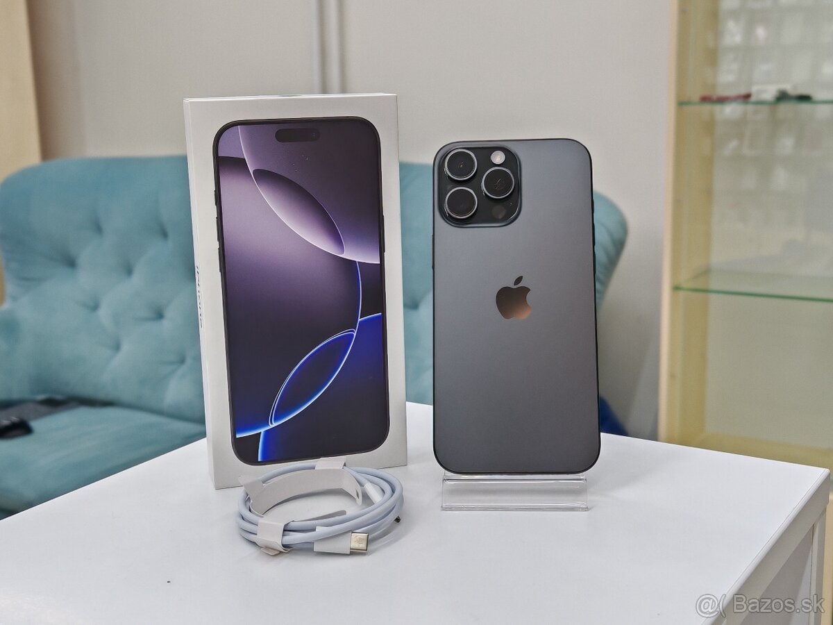 ✨ V ponuke mám na predaj / výmenu spoľahlivý iPhone 16 Pro Max 256GB v krásnej Black Titanium farbe 🖤 – nový kus, v pôvodnom balení.