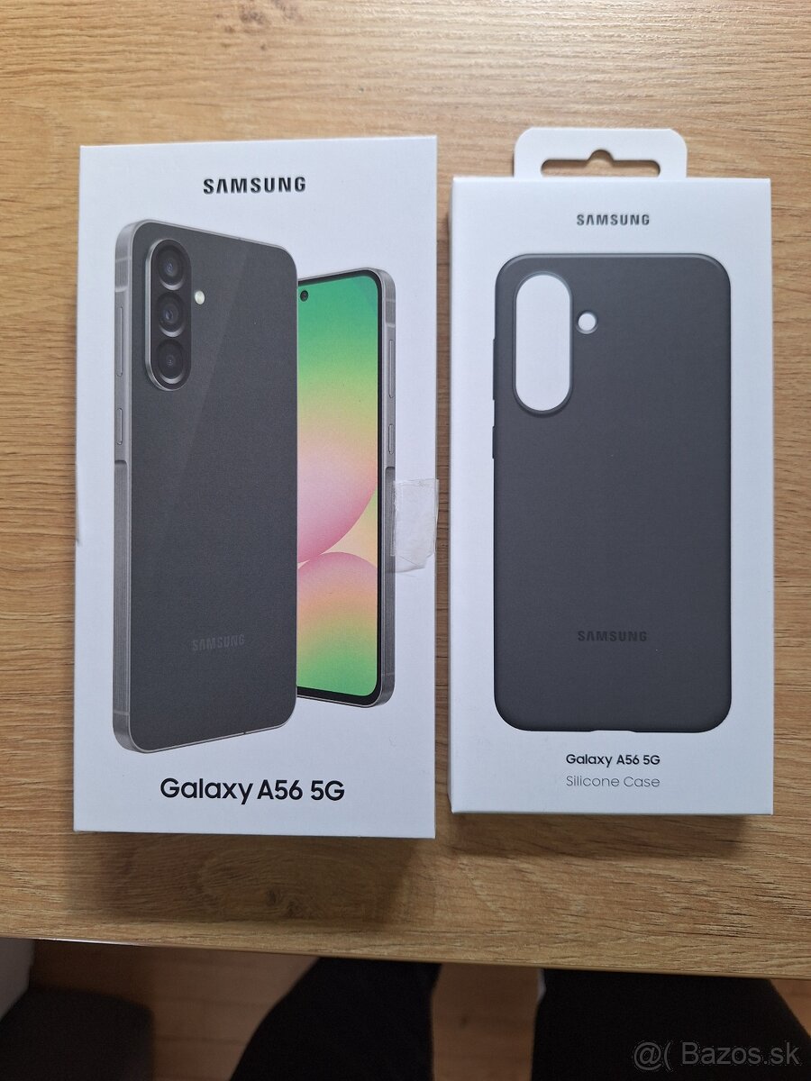 Predám nový Samsung A56 5G 8 GB/256 GB Awesome Graphite + ochranný kryt, ochranné sklo a nabíjačka.