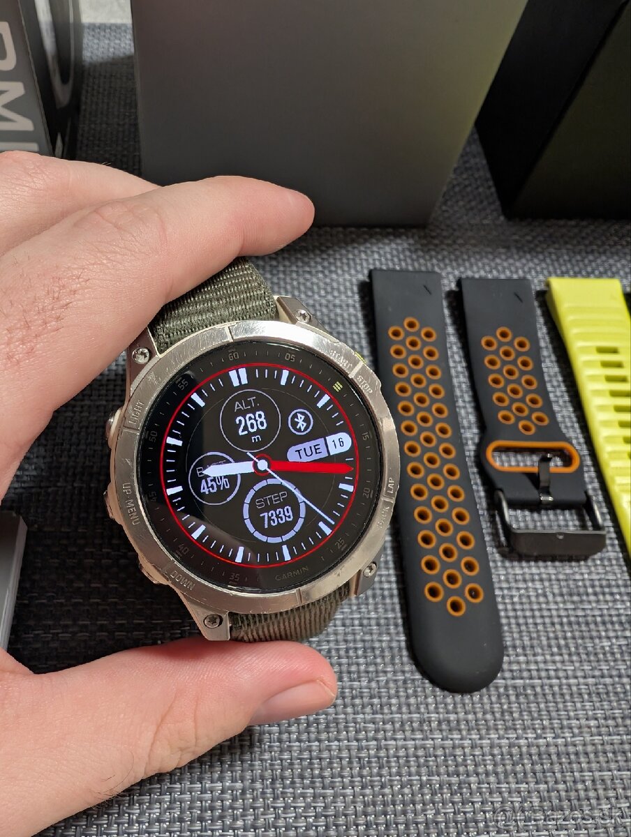 Predám tieto hodinky čo výbornom stave. Občasne používané na beh, inak neboli vystavované žiadnym nepriaznivým podmienkam. Displej je v poriadku a bez poškodenia nakoľko je zo zafírového skla. Všetko čo sa nachádzalo v balení je k dispozícii, pridám aj ďalší originálny náramok Garmin (na fotke aktuálne pripnutý na hodinkách). Luneta má mierne znaky od bežného používania, stačí vraj len preleštit a budú ako nové. 47mm. Výdrž batérie je až 16 dní. Ešte chvíľu v záruke do 10.1.2026. Prosím o kontakt len v prípade, že rešpektujete cenu.