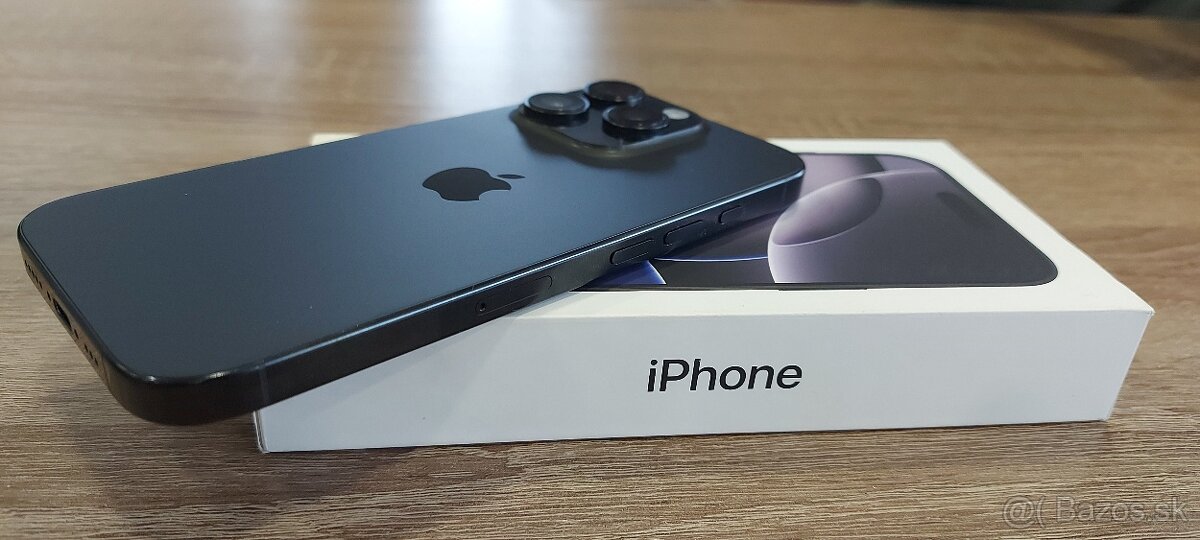Predám Apple iPhone 16 Pro 256GB farba Black Titanium v záruke do 05/2027 a 100 % stave bez škrabanca. Zdravie batérie 100 % od začiatku nalepené ochranné sklo a používané len s krytom. Kryt v cene. Iba osobný odber!