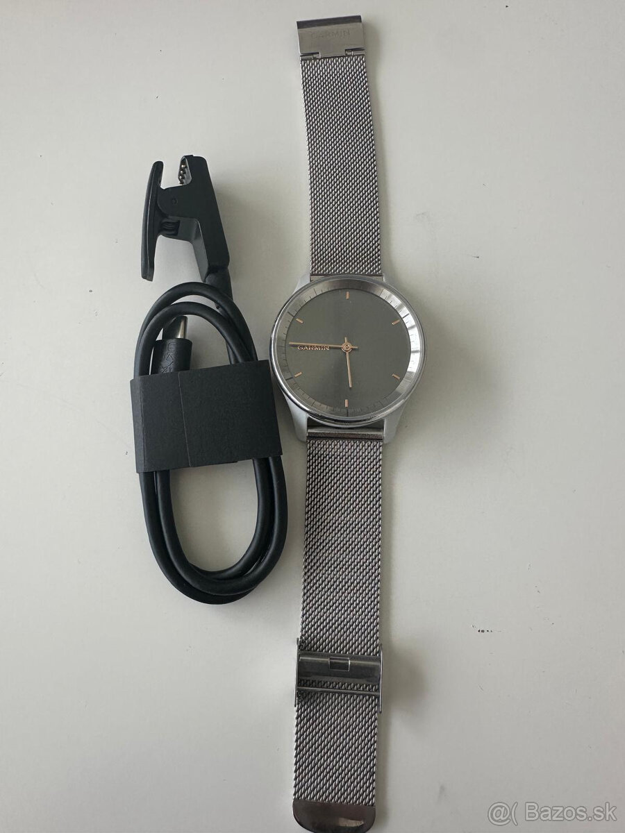 Predám elegantné dámske hodinky GARMIN VIVOMOVE TREND Silver, ktoré sú ešte 1/2roka v záruke. Hodinky boli málo nosené a sú ku nim okrem originál remienka aj ďalšie 2 remienky (biely gumenný(nepoužitý) a kovový) zakúpené cez eshop a nový nepoužitý nabíjací kábel. Nové hodinky spolu s remienkom stáli 420eur