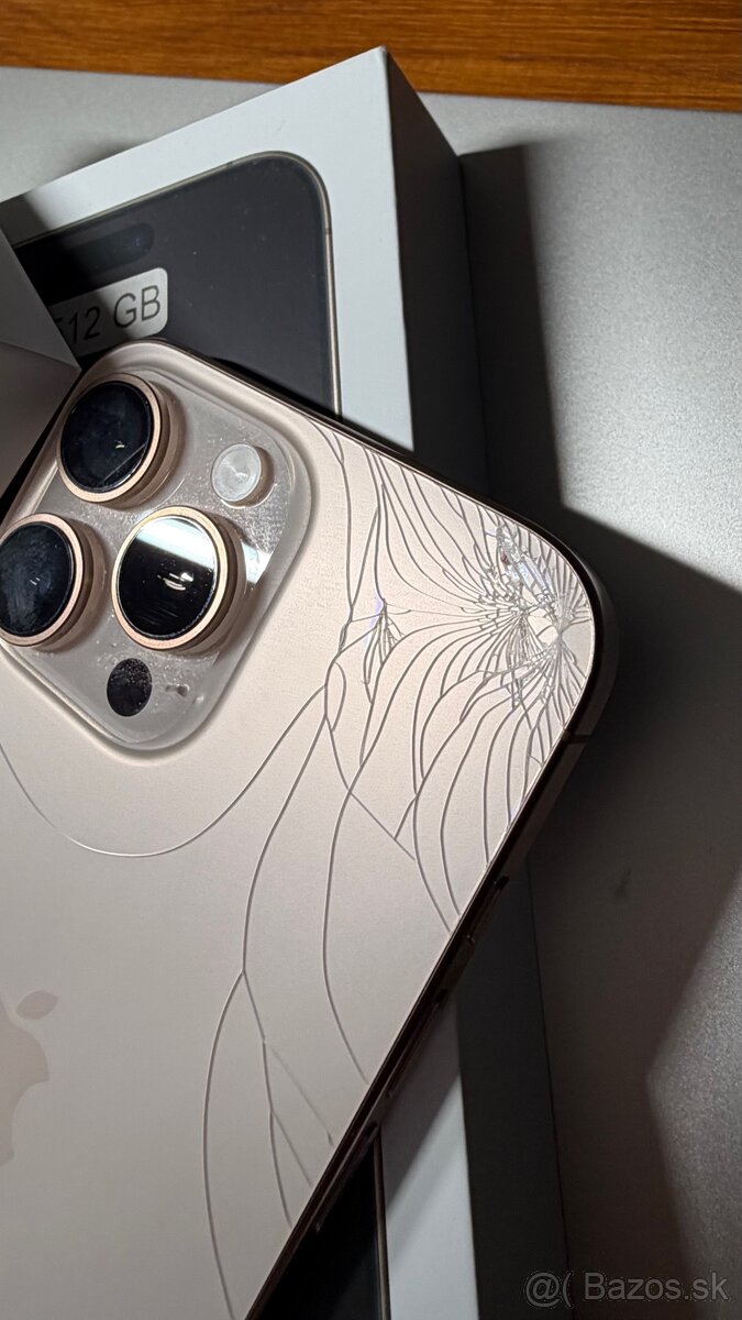 Predám iPhone 16 Pro Max 512 GB úplne zachovali nosený v puzdre, včera mi spadol v puzdre a neviem ako je možné že praskla zadná strana.