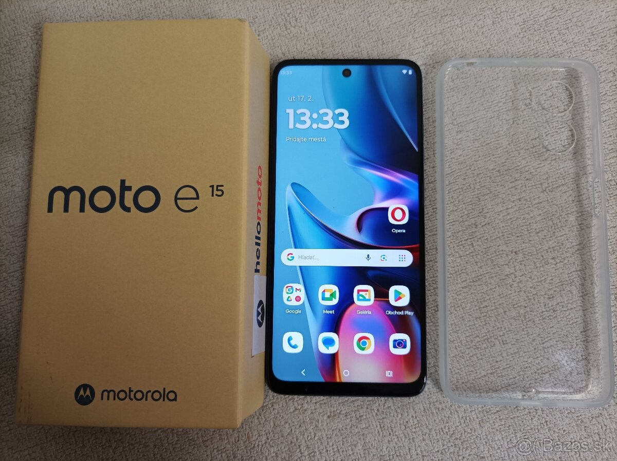 Predám Novú Motorolu moto e15, Kompletné balenie, v 2 ročnej záruke do 21.12.2027 so škatuľou a ochranným obalom. Pošlem aj dobierkou.
