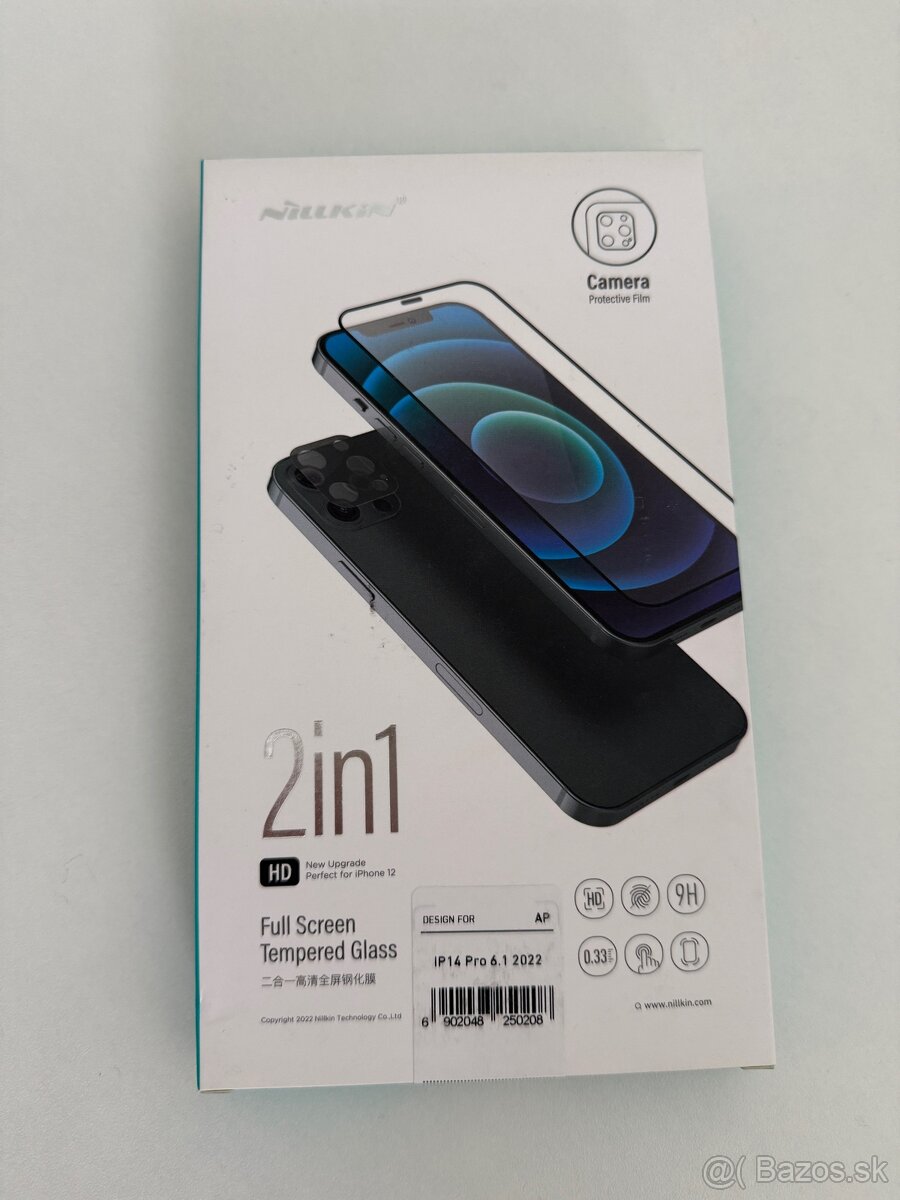Kvalitné Ochranné sklo Nilkin na Apple iPhone 14 Pro na displej a čočky kamery.