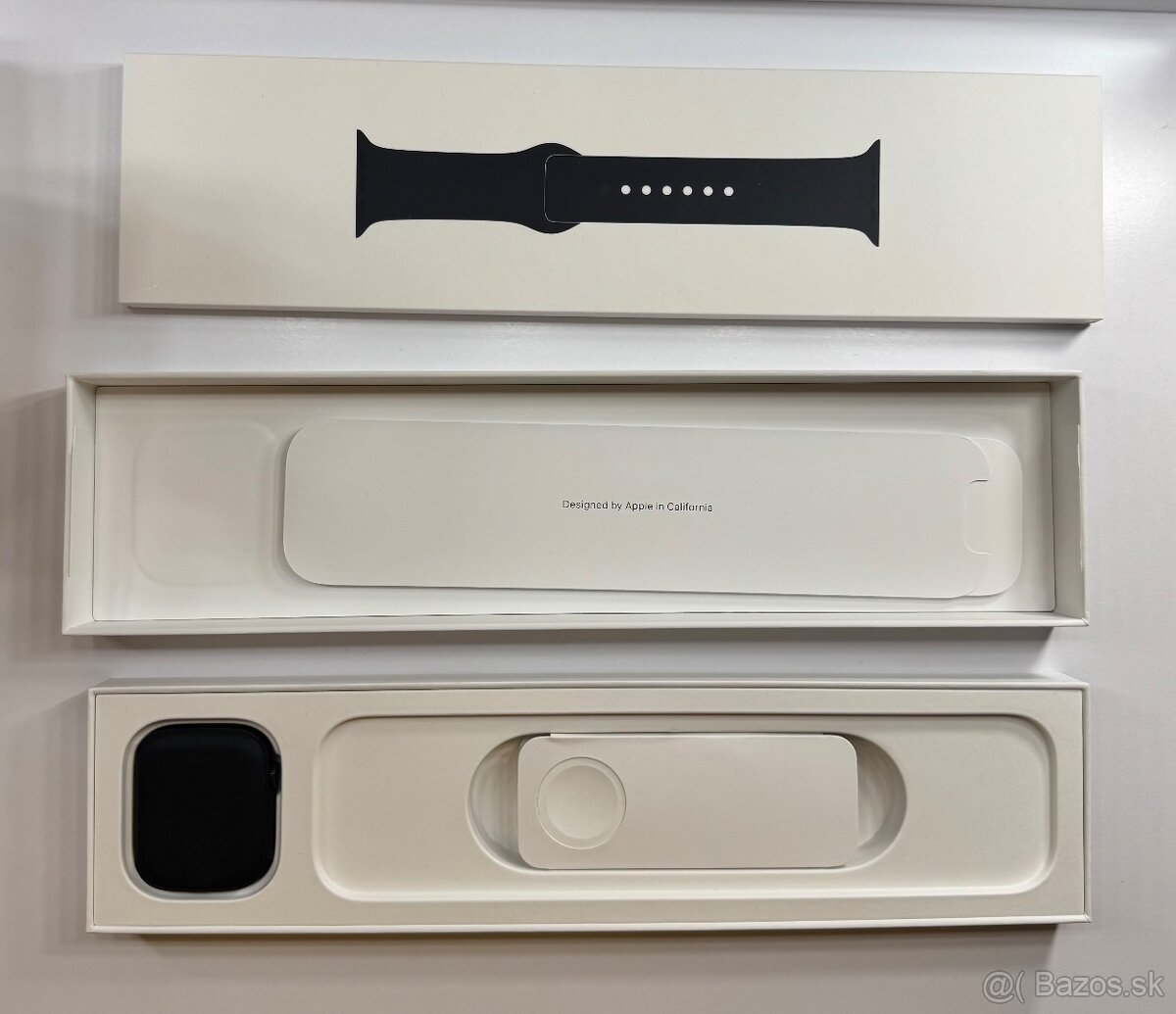 Zdravie batérie je 87%. Originál remienok nemám, prikladám jeden dokúpený vo veľkosti M/L v čiernej farbe. Pri predaji priložím aj ďalší, béžový.
