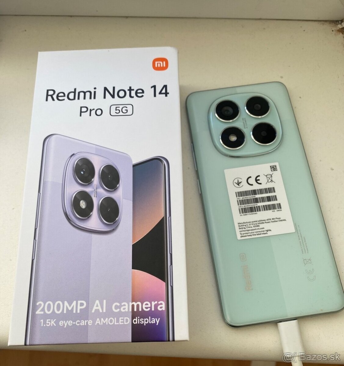 Predam redmi note 14 pro 5g 256GB pekny stav bez škrabancov s krabicou s káblom cena 150€