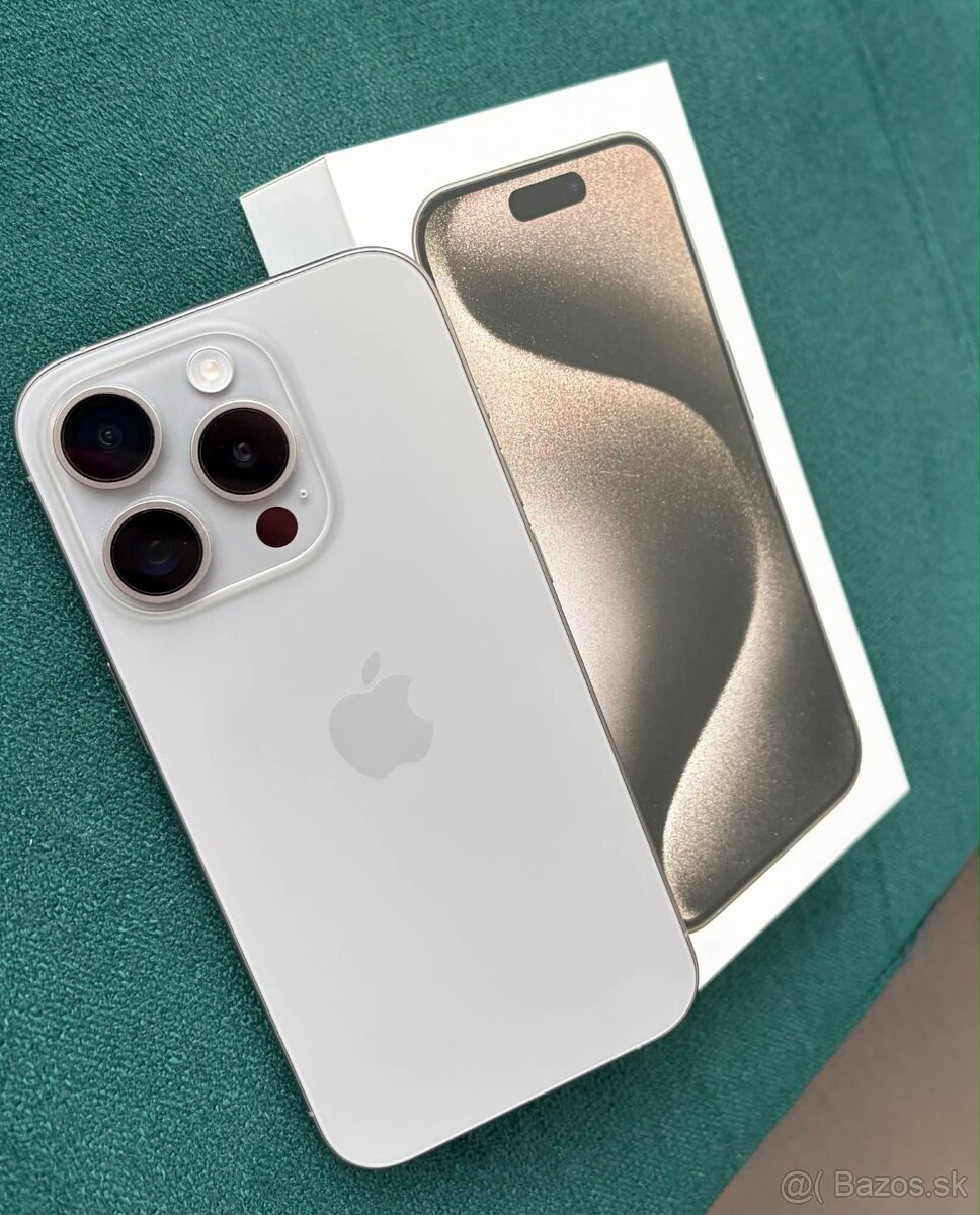 Ponukam na predaj Iphone 15 Pro vo farbe Natural titan 128gb, kupovany v NAY elektro KE v 11/2023, čiže už nieje v záruke. Som prvý a jediný majiteľ telefonu, vizualny stav je 100% , žiadne oderky ani škrabance na ňom niesu a preto foťiť hrany iphonu nemá zmysel. Nikdy nebol reklamovany ani opravovany.Zdravie baterie je 88% viď. foto v prilohe. Doklad o kúpe je samozrejmosťou. Komplet balenie ako ihla, krabička, nabijací kábel taktiež. Pridam aj pár krytov grátis. Dohoda na cene možná. Iba osobny odber v KE. Dôvod predaja je kúpa Iphonu 17 Pro. Kontaktujte ma Sms, imessage, POKIAL ČÍTATE TENTO INZERÁT, tak je stále AKTUÁLNY. Ďakujem