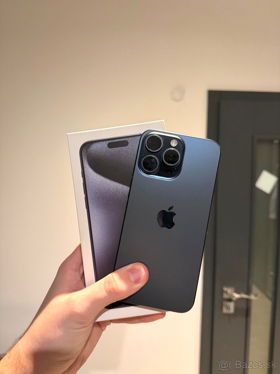 Dobrý deň, predám iPhone 15 Pro Max 256 GB verziu v modrej farbe. Telefón bol používaný rok a 5 mesiacov, je v perfektnom stave, na ráme telefónu vidno minimálne bodky po opotrebovanom titáne. Telefón má niečo okolo 600 cyklov a 91% zdravie baterky. Je odhlasený, vyresetovaný, pripravený pre nového majiteľa. Pridám k nemu aj 5 krytov, z toho 3 sú originál od Apple. Na cene sa vieme ešte dohodnúť. Preferujem osobný odber Žiar nad Hronom, pripadne okolie.
