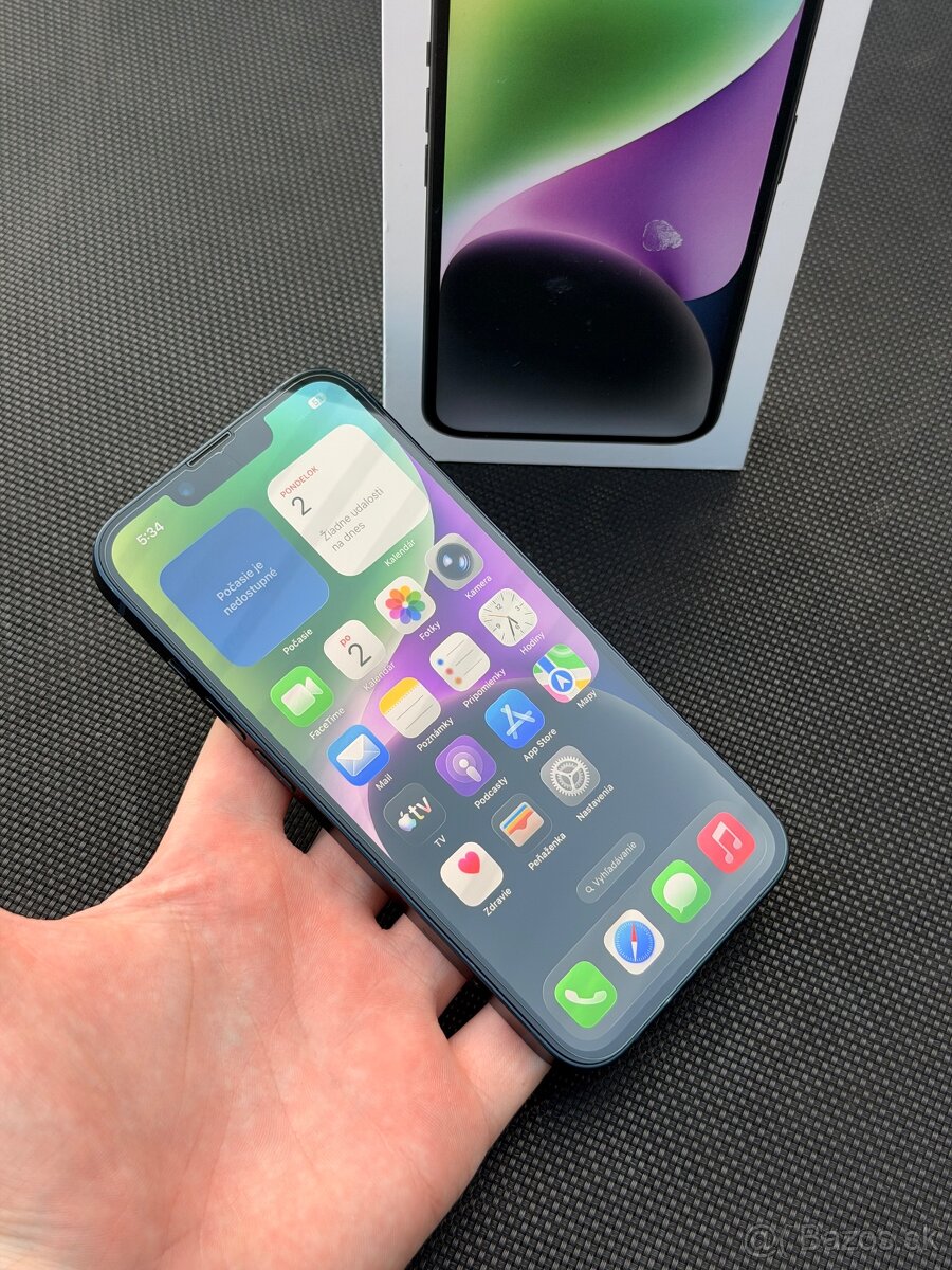 Predám iPhone 14 v elegantnej tmavomodrej farbe Midnight s nadštandardnou pamäťou 256 GB.