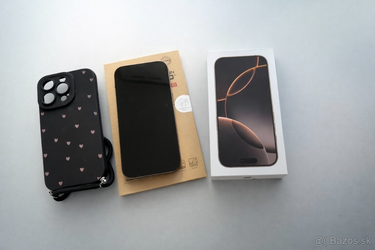 Predám Apple Iphone 16 Pro 128GB komplet príslušenstv o komplet balenie, kupovaný v Alze, nosený celý čas v obale a so sklom. Zdravie batérie je 92%.