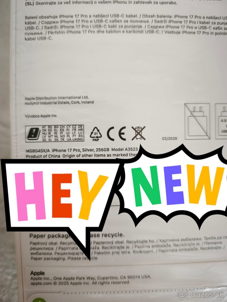 Predám nový, nerozbalený Apple iPhone 17 Pro 256GB Silver. Osobný odber možný - Zvolen, Banská Bystrica.