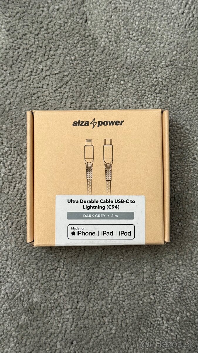 Predám nový, nepoužitý nabíjací kábel AlzaPower v odolnom nylonovom prevedení.