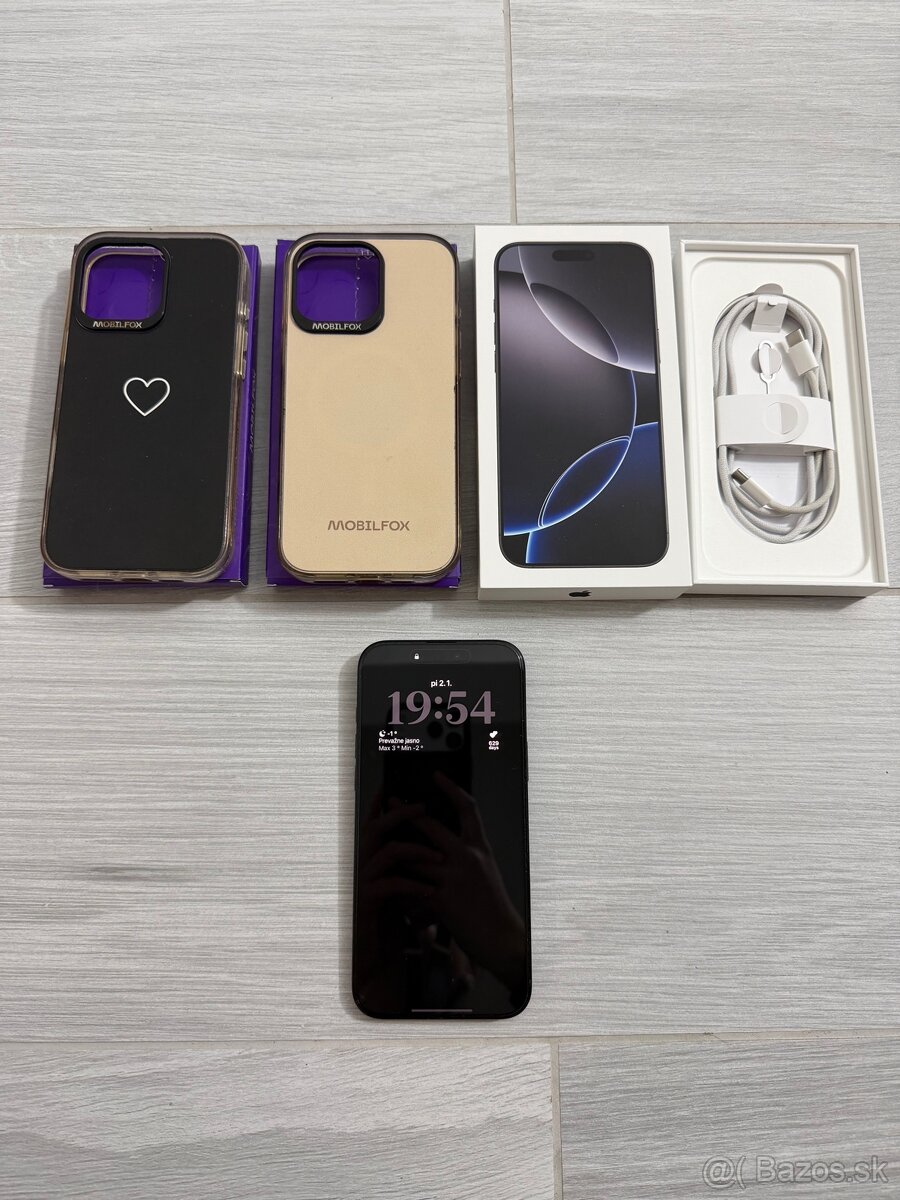 Predám iPhone 16 Pro Max 1TB Black Titanium v bezchybnom 100% stave, bez jediného škrabančeka, od momentu zakúpenia aplikované vysokokvalitné sklo na displej plus ochrana šošoviek fotoaparátov zn. Panzerglas. Používaný a nosený v ochrannom magsafe kryte značky MOBILFOX ,takže po celý čas chránený. Vizuálny a technický stav je vynikajúci (bezchybný). Počas celej doby používania sa nevyskytol žiadny problém, nikdy nebol rozoberaný, nepadol, všetky diely sú originál apple batéria má 194 cyklov a jej životnosť je 100% teda podporuje maximálny výkon zariadenia. Wifi, bluetooth, FaceID všetko funkčné.