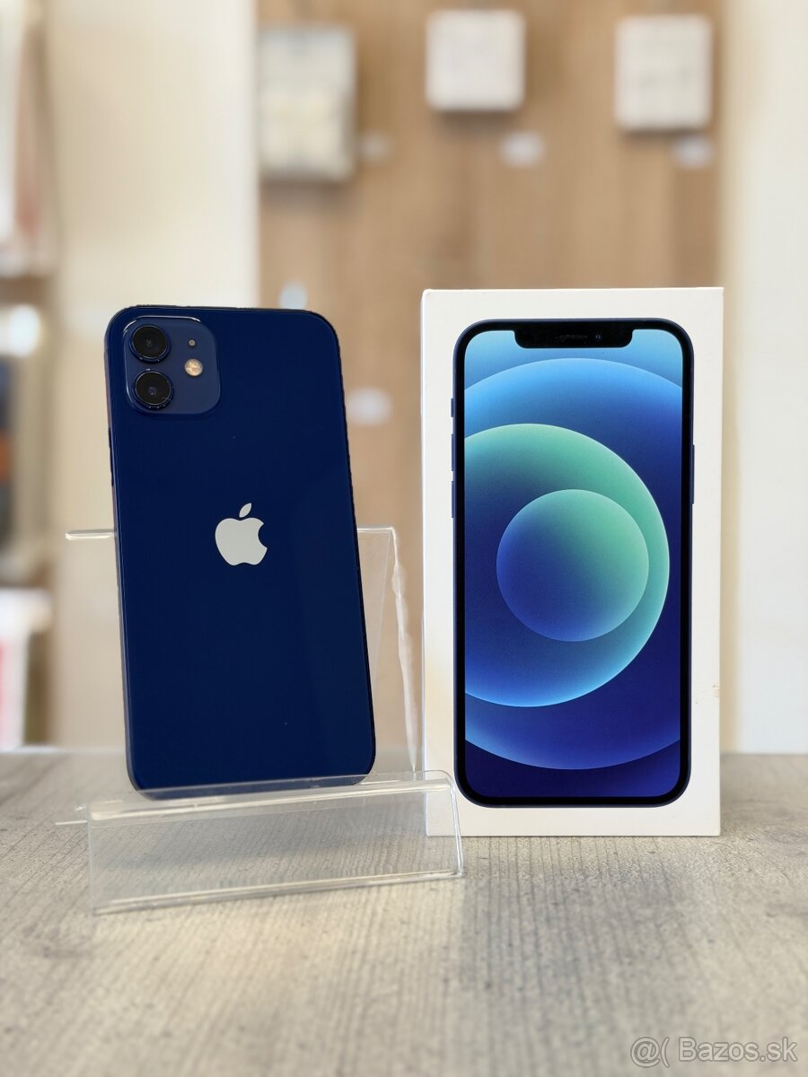 Predám Apple iPhone 12 s 64GB úložiskom v modrom farebnom prevedení. Telefón je v maximálne zachovalom stave, používaný výhradne v ochrannom kryte a s nalepeným ochranným sklom na displeji. Je v ňom úplne nová batéria, zdravie 100%.