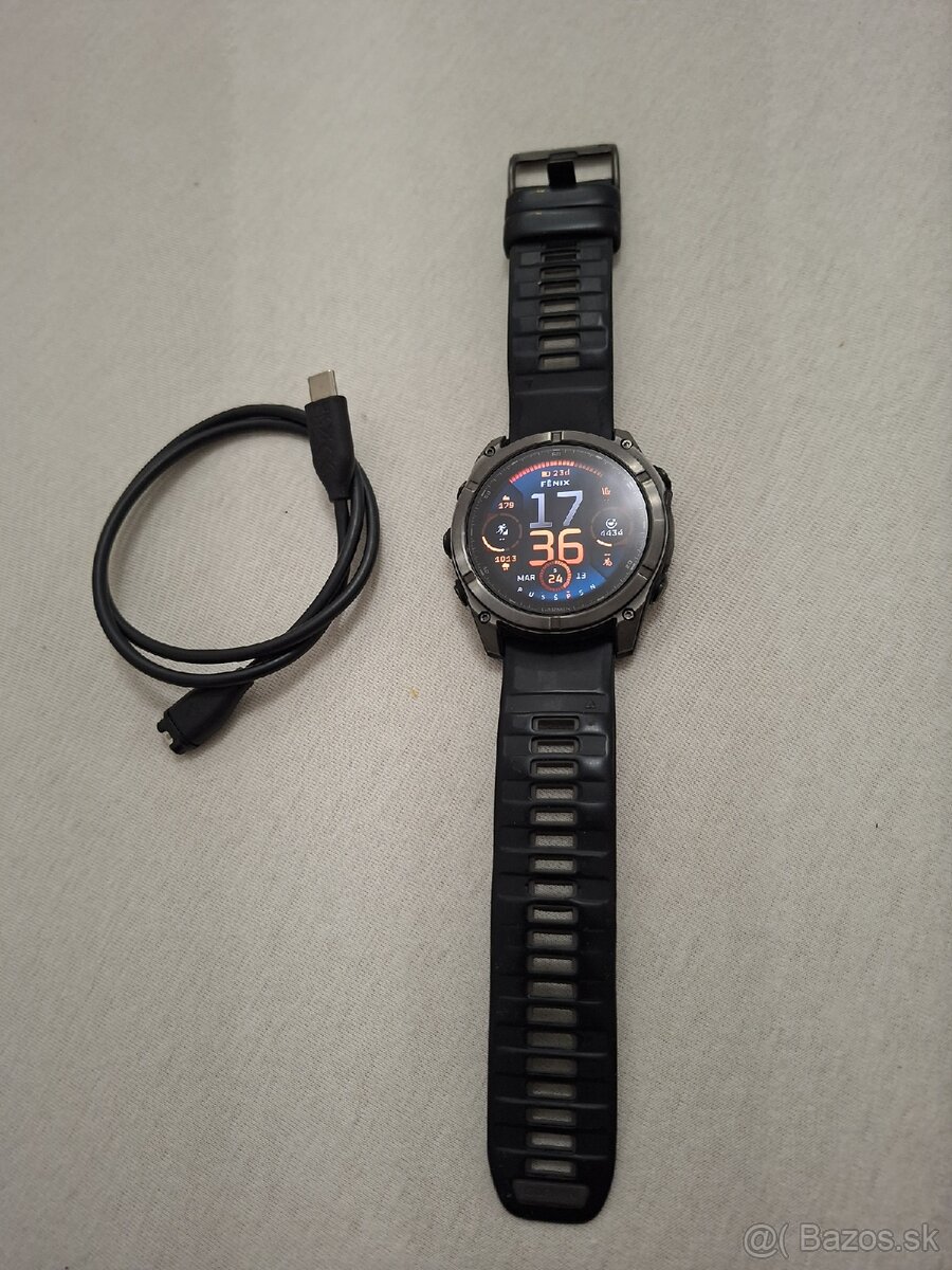 Predám Garmin Fenix 7X Solar 51 mm - [13.3. 2026]Dobrý deň, predám Garmin Fenix 7x solar 51 mm v super stave. Displej je bez známok používania a na lunete sú jemné škrabance viď. foto. Hodinky sú ako nové, nosené v ochrannom púzdre a na displeji je nalepené ochranné sklo. K hodinkám dodám nabíjací kábel originál Garmin a ochranné púzdro na lunetu. ...