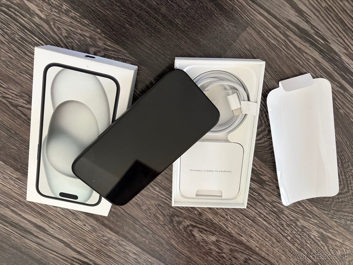 iPhone 15 128GB - ako nový, záruka - [14.3. 2026]Predám iPhone 15 128GB v čiernej farbe. Telefón je v stave ako nový. Taktiež je telefón ešte v záruke. Zdravie baterky je 85%, vydrží celý deň. Telefón je v pôvodnom stave, nikdy nebol servisovaný. Je plne funkčný, kľudne si môžete vyskúšať pri predaji. K telefónu pridám záručný list, krabicu, nabíj ...
